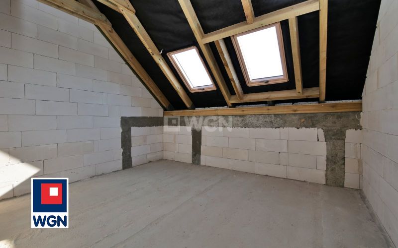 Dom o powierzchni użytkowej 146,84 m2, na którą składają się dwa poziomy oraz strych.